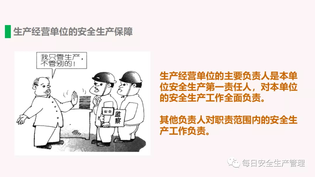 新《安全生產法》第三條明確提出“三個必須”:安全生產工作實行管行業(yè)必須管安全、管業(yè)務必須管安全、管生產經營必須管安全,強化和落實生產經營單位主體責任與政府監(jiān)管責任,建立生產經營單位負責、職工參與、政府監(jiān)管、行業(yè)自律和社會監(jiān)督的機制。